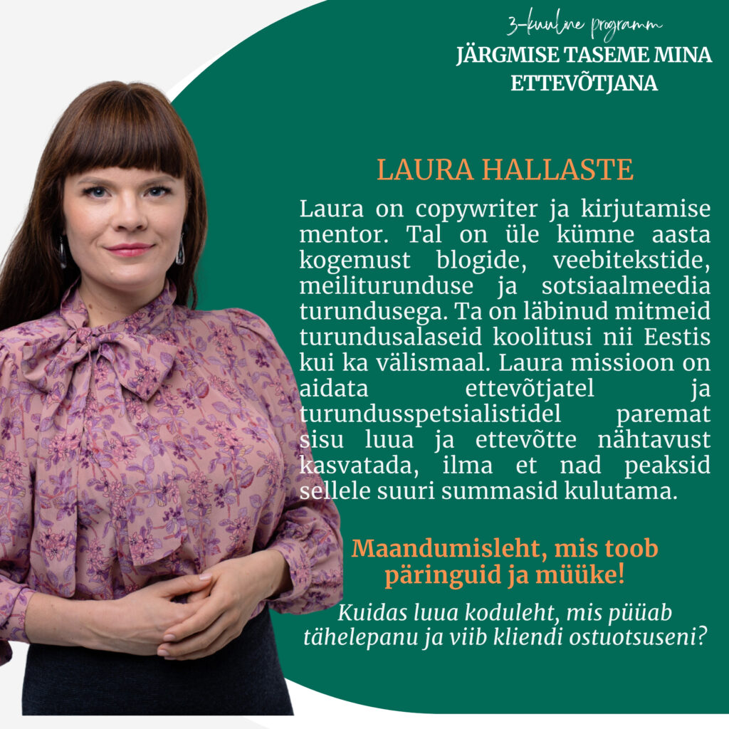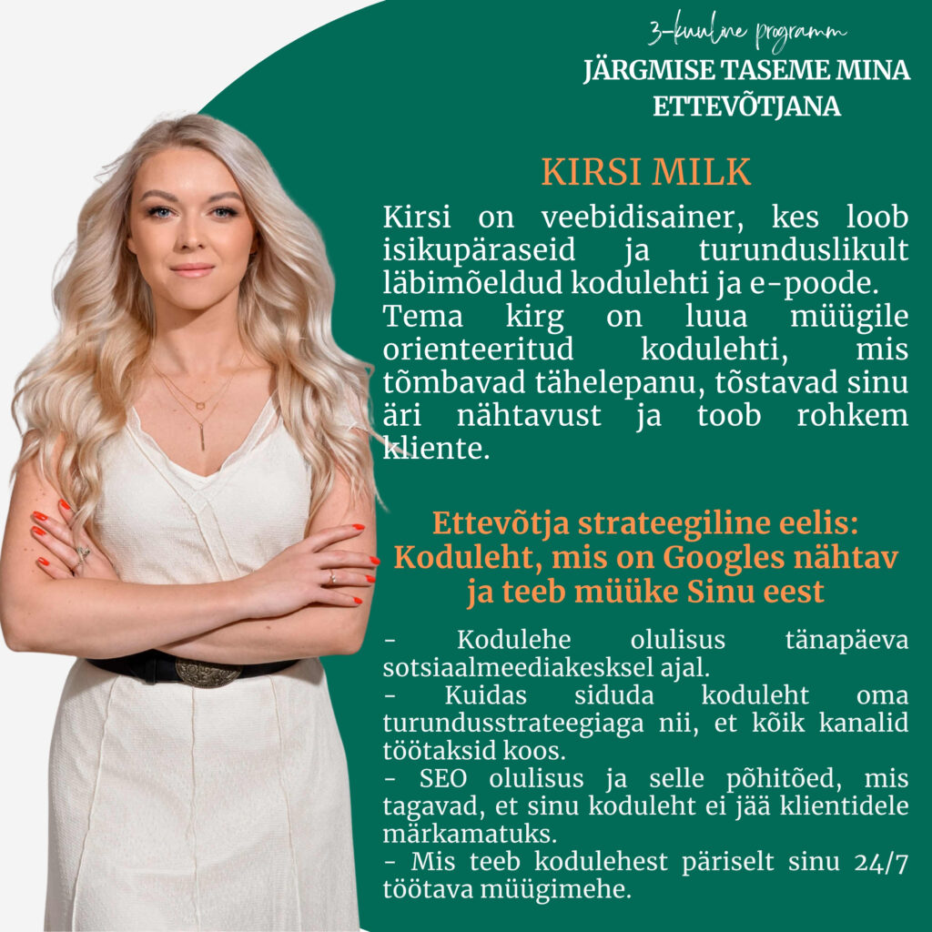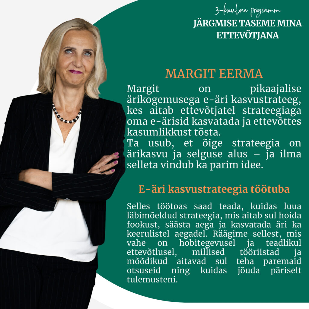 👉 Tahad edukalt ja süsteemselt liikuda soovitud eesmärkide poole ja need saavutada? Tundmaks ettevõtlusest oodatud vabadust ja rahulolu eneseteostusest!