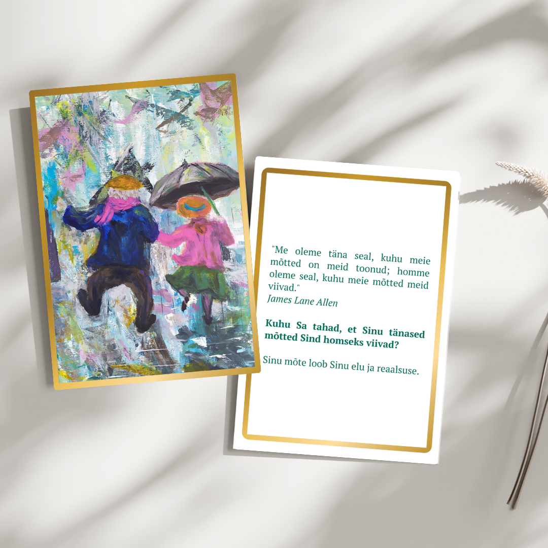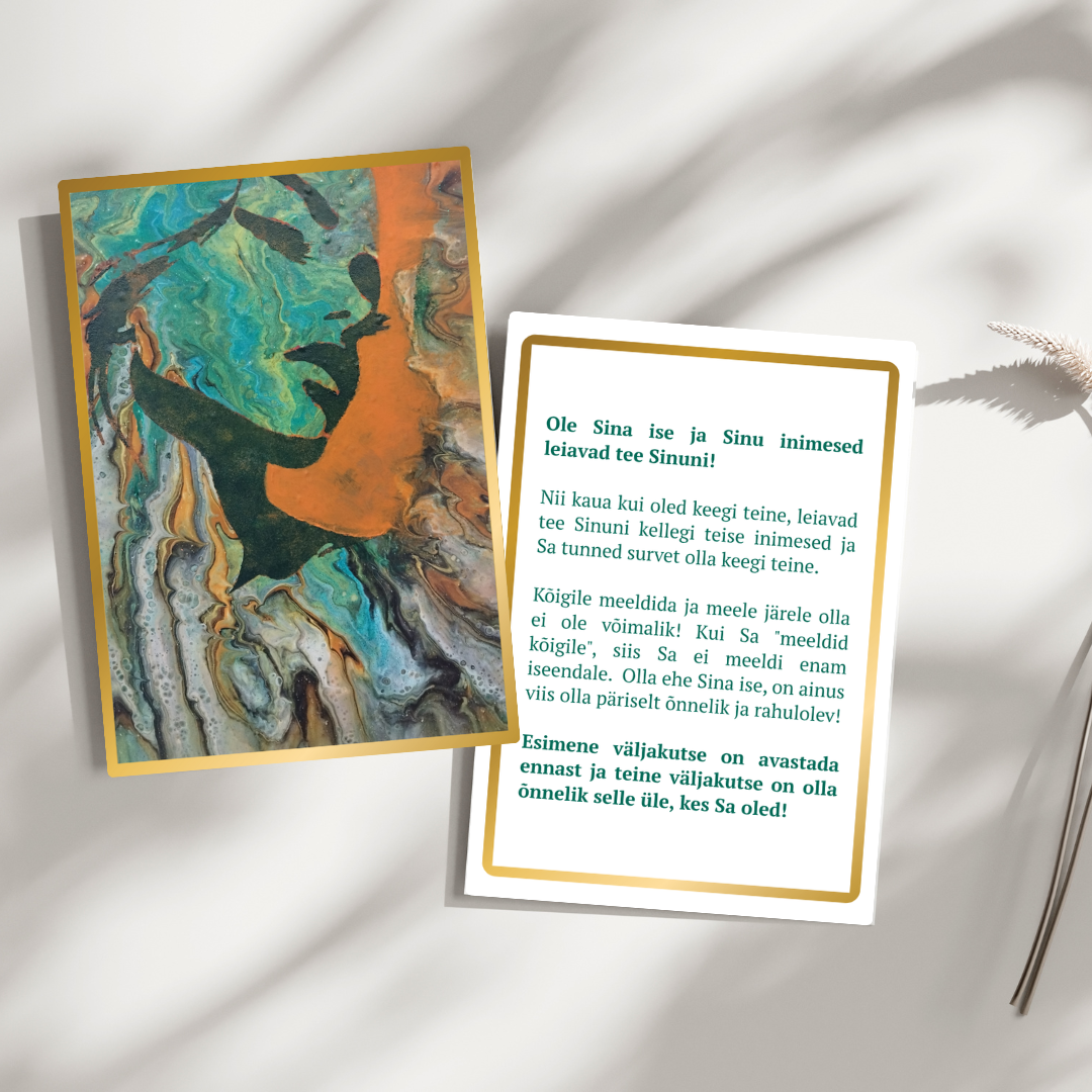 - Astu oma mõtete ja tunnetega dialoogi – Usalda oma esimest mõtet ja luba sellel Sinuga vestelda. Kasuta kaarti inspiratsiooni, selguse ja teadlike valikute tegemise abivahendina.