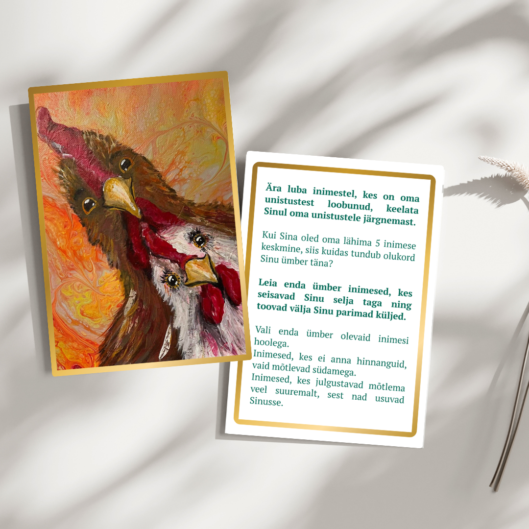 - Seadista kavatsus – Enne kaardi tõmbamist esita endale küsimus, millele otsid vastust. See võib olla seotud töö, otsuste või isikliku arenguga.